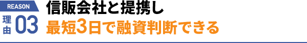 信販会社と提携しているので、最短3日で融資判断が可能です。