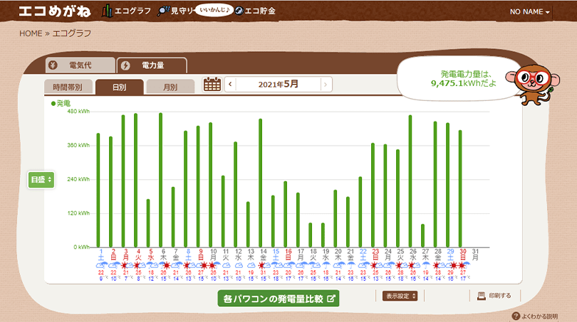 気象条件、周囲環境条件などにより発電電力量は変動します。